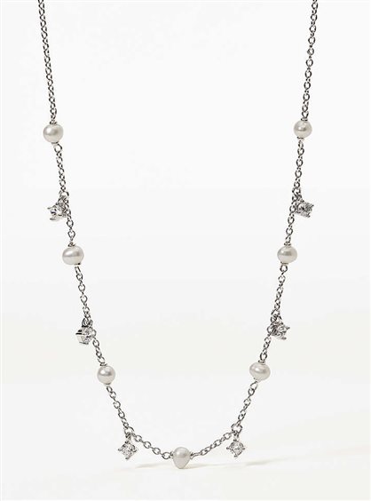 Collana Da Donna Di Mabina. Girocollo In Argento 925 Catena Rolò Larghezza 1.50 Mm, Lunghezza Regolabile Da 36 A 40 Cm Con Perle Coltivate Ø 3 - 4 Mm E Zirconi Bianchi Ø 3 Mm. La Referenza È 553457 Questo collana verrà spedito con Scatola Originale Mabina Gioielli
