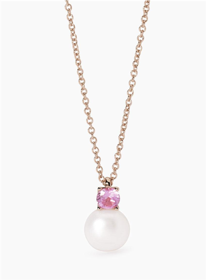 Girocollo in argento 925/ººº placcato oro rosa 18K con catena forzatina 1.5 mm, pendente con tormalina rosa sintetica Ø 5 mm e perla bottone coltivata Ø 9-9.5 mm, lunghezza regolabile da 40 a 45 cm