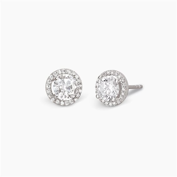 Orecchini donna in argento 925% , diametro cm 0.8 , zirconi bianchi incassati.Immagine indicativa , la confezione può variare di forma e colore.