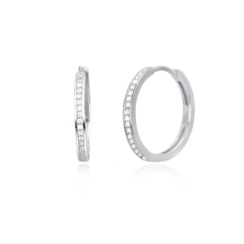 Orecchini a cerchio in argento con zirconi. • Incastonatura degli zirconi a griffe • Materiale: Argento 925, Zirconi