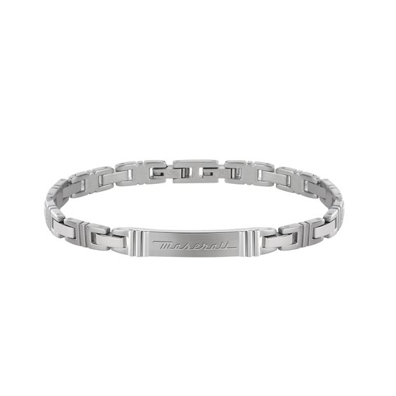 Bracciale Maserati in acciaio con piastrina centrale con marchio inciso.