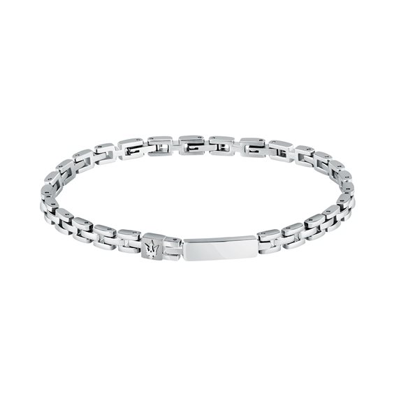 Maserati bracciale JM324AVD57 Braccialetto da uomo realizzato in acciaio anallergico. Centrale con logo e piccola targa incidibile. Misura regolabile; chiusura con maglie rimovibili.