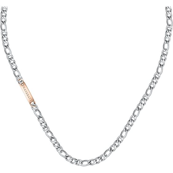 Collana Maserati in acciaio con piastrina rosè e dimante, misura 500mm