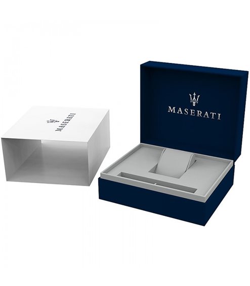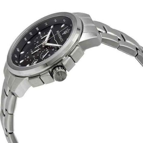 Orologio Maserati Della Collezione Successo. Orologio Cronografo Con Movimento Al Quarzo, Diametro Della Cassa Di Mm 44, Tipo Di Cassa: Tonda. Il Cinturino/Bracciale È In Acciaio Di Color Acciaio. Resistenza All'Acqua Di 5 Atm Con Fondo E Corona A Vite.