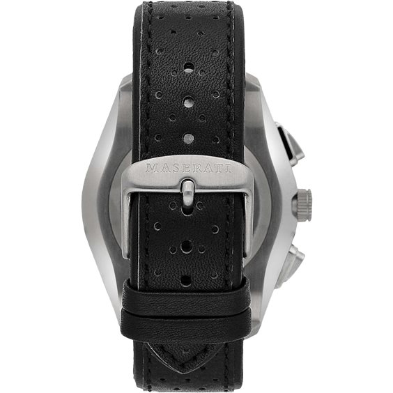 Orologio Cronografo Da Uomo Di Maserati Della Collezione Traguardo Smart. Modello In Acciaio, Pelle Naturale. Orologio Con Cassa In Acciaio Spazzolato E Raffinato Della Dimensione Di 45Mm. Bracciale In Pelle Di Colore Nero Con Chiusura Fibbia Ardiglione. Orologio Con Vetro Minerale. La Resistenza All'Acqua È Di 3 Atm. La Referenza È R8851112001 Questo cronografo verrà spedito con Scatola Originale Maserati