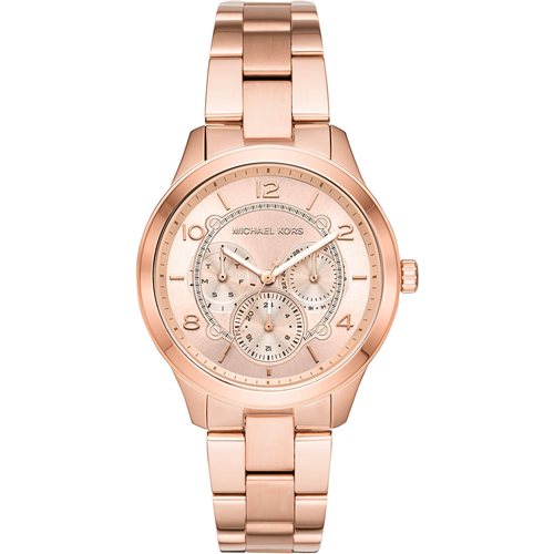 Orologio Multifunzione Da Donna Di Michael Kors Della Collezione Runway. Modello Con Cassa Rotonda In Acciaio Inossidabile Di Colore Oro Rosa Con Finitura Mista. Cassa Di Misura 38 Mm E Spessore Di 8 Mm. Ghiera In Acciaio Inossidabile Di Colore Rose Gold Con Finitura Lucida. Il Quadrante È Di Colore Rose Gold Con Vetro Trasparente. Bracciale In Acciaio Inossidabile Di Colore Rose Gold Con Finitura Mista E Chiusura Deployante. La Distanza Delle Anse È Di 18 Mm. La Resistenza All'Acqua È Di 5 Atm. Orologio Con Movimento Al Quarzo