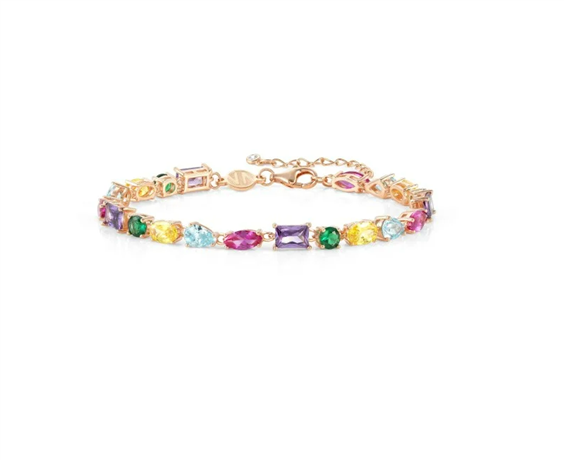 Elegante bracciale in Argento 925/°°° rosato con pietre multicolore; misura personalizzabile da 17,5 a 20,5 cm