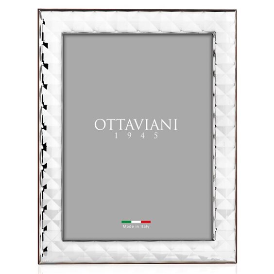 CORNICE PORTAFOTO ARGENTO LAVORAZIONE A DIAMANTE LUCIDA MISURA ESTERNA 18 X 24 INTERNA 13 X 18 , RETRO IN LEGNO SCURO .GARANZIA OTTAVIANI . PUO' ESSERE POSIZIONATA IN MODO ORRIZONTALE
