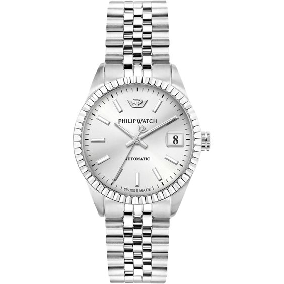 Orologio Philip Watch Caribe femminile in acciaio con cinturino jubilè e movimento automatico. DImensione cassa 35mm, vetro zaffiro e quadrante bianco.