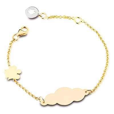 BRACCIALE IN ORO CON ELEMENTI NKT205G bracciale in oro con elementi. lunghezza bracciale 12/14 cm - targhetta: base 2,3 cm - altezza 0,9 cm - angelo: base 0,7 cm - altezza 0,8 cm