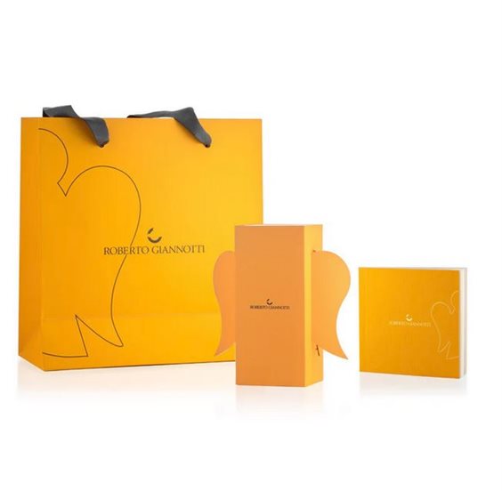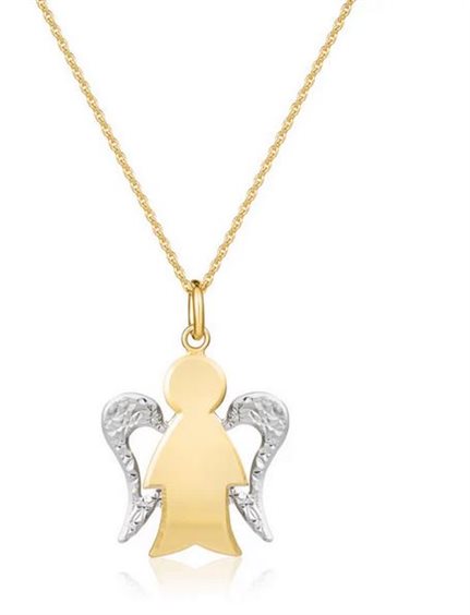 Questa collana con Angelo in oro e ali con diamanti è il regalo perfetto da donare in occasione di un evento importante come una cerimonia grazie al suo straordinario messaggio emozionale. Il ciondolo angelo rappresenta infatti la protezione, la sicurezza e la serenità, mentre le ali simboleggiano la libertà e il coraggio di inseguire i propri sogni. L'oro sottolinea la preziosità di questi messaggi mentre le ali con diamanti emanano ricchezza e glamour. L'eleganza e lo stile di questa collana, insieme al forte significato di cui si fa portavoce, renderanno questo gioiello un'idea regalo ancora più apprezzata. Oro 375/°°° Versione grande lunghezza catena 42/45 cm angelo: base 1,5 cm - altezza 2 cm Versione piccola lunghezza catena 42/45 cm angelo: base 1,2 cm - altezza 1,6 cm