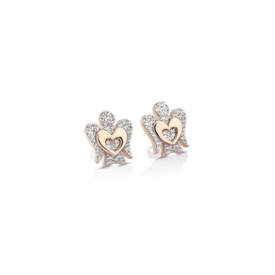 Orecchini Da Donna Di Roberto Giannotti Della Collezione Angeli. Orecchini Con Angelo In Argento Rosato, Cuore E Zirconi Bianchi. L'Angelo Ha Base Di 1,3 Cm E Altezza Di 1,5 Cm .