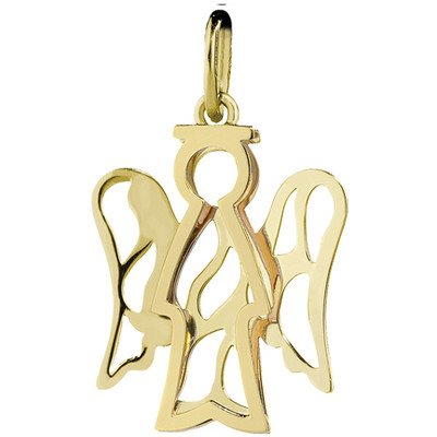 . Pendente Angeli 'Mini', Pendente In Oro. Oro 375/°°° - Comprensivo Di Laccetto In Filo Cerato Nero - Angelo: Base 1,3 Cm - Altezza 1,5 Cm