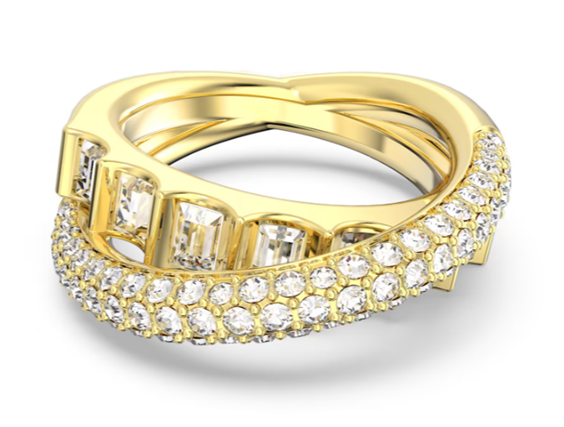 L'arte della precisione prende vita in questo anello doppio della famiglia Rota. Ispirato al progresso e al moto continuo, il design placcato color oro fonde elegantemente insieme una fascia increspata incastonata con pietre con taglio baguette e una seconda fascia in pavé. Indossa questo anello per uno stile moderno e all'avanguardia che ti proietta nel futuro. Articolo nr.: 5661056 Collezione: Rota Colore: Bianco Materiale: Cristalli, Placcato oro