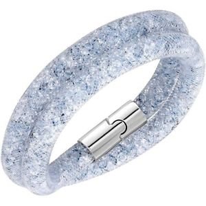 Femminile e attualissimo, il gioiello trasformista si può indossare doppio come bracciale avvolgente, oppure come girocollo. Il tubolare grigio 3D a rete di nylon trattiene una miriade di minuti cristalli tono su tono. La creazione è completata da una pratica chiusura magnetica in metallo placcato oro rosa ed è disponibile in due lunghezze.