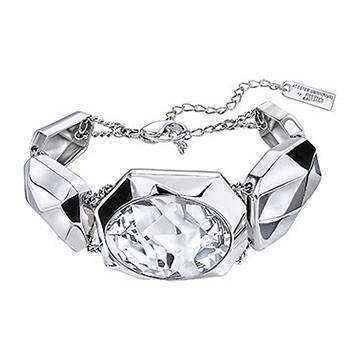 Conosciuto come l’enfant terrible della moda francese, Jean Paul Gaultier stupisce sempre per il suo estro eclettico e a volte irriverente. Fin dall’inizio della sua carriera, lo scopo di questo genio creativo è stato di dimostrare che la bellezza ha diverse forme e anche l’oggetto più semplice può essere trasformato in qualcosa di starordinario. Da molti anni Jean Pual Gaultier collabora con Swarovski i cui cristalli sono spesso stati protagonisti delle sue creazioni. La collaborazione tra Swarovski e Jean Paul Gaultier culmina nella creazione di un cristallo dal taglio in esclusiva «Kaputt» (parola tedesca che significa rotto). Gaultier gioca con il concetto della «perfetta imperfezione» e Kaputt è proprio l’emblema della bellezza imperfetta, un omaggio al potere delle contraddizioni. Un taglio perfetto dall’aspetto imperfetto che ha richiesto più di un anno anni di studi e progettazione per essere realizzato. La prima collezione nata da questo sodalizio è apparsa in pubblico per la prima volta durante la sfilata del designer nel corso della Haute Couture Spring 2015 a Parigi. Al centro di ogni pezzo un magnifico cristallo dalla forma inedita ideato proprio da Jean Paul Gaultier che ha voluto dare alla gemma una forma originale ed estrosa, proprio come la sua ispirazione sempre multiforme e singolare. Ad uso esclusivo del designer fino a settembre 2015, il cristallo in esclusiva Kaputt è il protagonista di una nuova collezione Swarovski dal design inequivocabile e dalla fascia prezzo accessibile. Reverse è una collezione moderna e contemporanea, in cui la brillantezza del cristallo e la perfezione imperfetta delle sfaccettature danno vita a gioielli originali e innovativi da indossare tutti i giorni per portare un tocco di fascino, stile e irriverenza nella vita di tutti i giorni. Realizzato su disegno di Jean Paul Gaultier, il bracciale si ispira al tema della perfezione nell’imperfezione. Per esaltare al massimo l’esclusivo taglio Kaputt dello stilista, il magnifico Clear Crystal centrale è incastonato in un elemento scultoreo in metallo rodiato. L’attualità di questa irresistibile creazione aggiungerà un tocco moda al vostro portagioie. Per un divertente effetto amplificato, indossatelo con lo stesso bracciale in versione più bassa. Misura: 17 cm Articolo nr.: 5243745