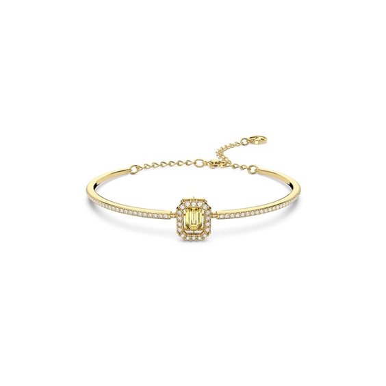 Il bracciale rigido Millenia concretizza l’aspirazione di Daniel Swarovski di rendere accessibile a tutti lo stile dell’alta gioielleria. Si compone di una pietra gialla dal taglio ottagonale, incorniciata da cristalli pavé scintillanti, incastonati su una fascia placcata color oro con chiusura a moschettone. Indossalo da solo e sovrapposto ad altre creazioni per impreziosire i look di ogni giorno.