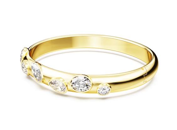 Dimostrazione perfetta dell’abilità di taglio di Swarovski, questo bracciale rigido Dextera sfoggia una serie eterogenea di cristalli sfaccettati. Il massiccio cinturino placcato rodio scivola alla perfezione sul polso e cattura istantaneamente la luce con il suo metallo ultralucido e le sue pietre splendenti. Un gioiello che aggiungerà sicuramente un’accattivante intensità alla tua collezione.Lunghezza: 17.3 cm Diametri interni: 5.8 x 5.2 cm Dimensione decorazione: 0.8 x 6.4 cm Materiale: Cristalli, Placcatura rodio Tipo di fermaglio: Anello a molla