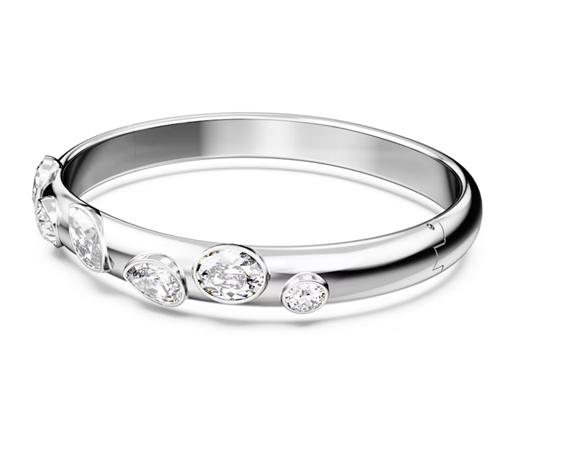 Dimostrazione perfetta dell’abilità di taglio di Swarovski, questo bracciale rigido Dextera sfoggia una serie eterogenea di cristalli sfaccettati. Il massiccio cinturino placcato rodio scivola alla perfezione sul polso e cattura istantaneamente la luce con il suo metallo ultralucido e le sue pietre splendenti. Un gioiello che aggiungerà sicuramente un’accattivante intensità alla tua collezione. Articolo nr.: 5671194 Collezione: Dextera Colore: Bianco Lunghezza: 17.3 cm Diametri interni: 5.8 x 5.2 cm Dimensione decorazione: 0.8 x 6.4 cm Materiale: Cristalli, Placcatura rodio Tipo di fermaglio: Anello a molla
