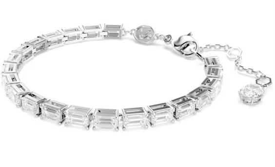 Questo delicato bracciale Matrix reinterpreta un classico intramontabile. Realizzato con un gancio a moschettone, il design placcato rodio presenta un filo completo di Swarovski Zirconia taglio Octagon Step, creando un look luminoso, semplice ma accattivante. Indossalo come una creazione di pura eleganza per ogni occasione, di giorno o di sera. Articolo nr.: 5707200 Collezione: Matrix Lunghezza (minima - massima): 15.5 - 20.5 cm Ampiezza: 0.3 cm Materiale: Placcatura rodio, Zirconia Colore: Bianco Tipo di fermaglio: Moschettone