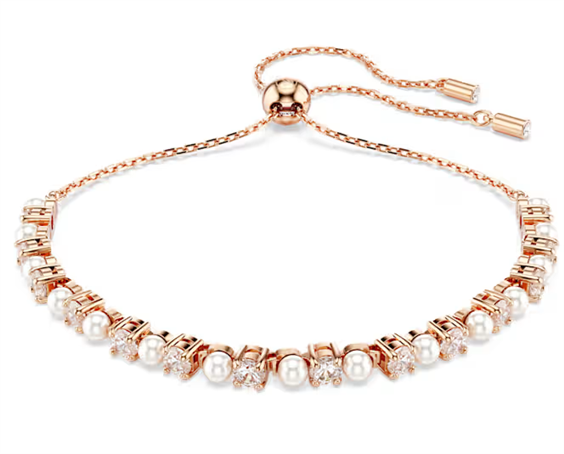 Questo raffinato bracciale Matrix è una pura affermazione di eleganza. La delicata catenina placcata in tonalità oro rosa presenta Crystal Pearls Swarovski bianche alternate a Swarovski Zirconia montate a griffe che formano una scintillante combinazione di delicati colori e luci. Indossalo con un paio di orecchini Matrix coordinati per amplificare la tua luce ogni giorno. Articolo nr.: 5729506 Collezione: Matrix Lunghezza massima: 24 cm Ampiezza: 0.3 cm Materiale: Cristalli, Perla di cristallo, Placcato color oro rosa, Zirconia Colore: Bianco Tipo di fermaglio: Sfera scorrevole