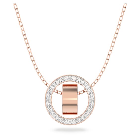 Per la sua ricercatezza fatta di semplicità, questo pendente a cerchio è una scelta perfetta per ogni giorno. Espressione della meticolosa artigianalità di Swarovski, si compone di due cerchi placcati in tonalità oro rosa, arricchiti da un pavé di cristalli scintillanti, per figurare da complemento indimenticabile nella tua collezione di gioielli