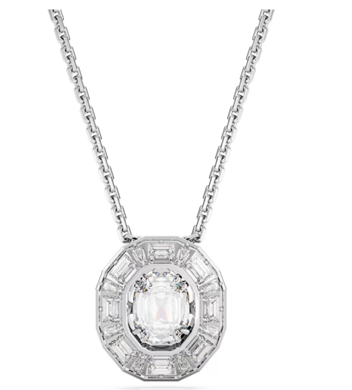 Grazie alla sua sorprendente e meravigliosa combinazione di tagli, questo pendente Mesmera aggiungerà intensità a qualsiasi outfit. Indossato su una deliziosa catena, questo gioiello placcato rodio, audace e di grande effetto, presenta uno Swarovski Zirconia ottagonale danzante, circondato da una moltitudine di cristalli dal taglio Baguette a gradini. Un regalo squisito per chiunque abbia un raffinato senso dello stile. Immagini a scopo illustrativo.