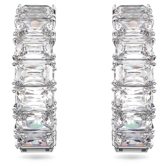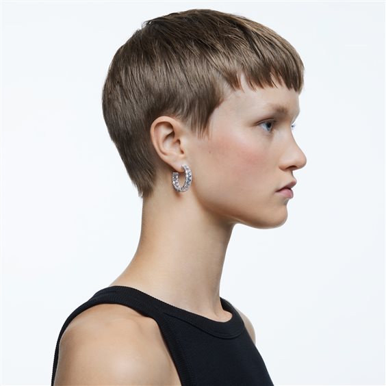 Un design a cerchio classico reinterpretato in modo brillante. Questo elegante paio presenta una serie uniforme di pietre dal taglio octagon inserite in una raffinata montatura placcata in rodio. Davvero un tocco di magia quotidiana in più a ogni look, di giorno o di sera. Parte della linea Matrix, questi orecchini sono firmati dalla Direttrice creativa Giovanna Engelbert per la Collection III. Articolo nr.: 5612673 Collezione: Matrix Dimensione: 2.7 x 0.7 cm Materiale: Cristalli, Placcatura rodio, Zirconia Colore: Bianco Peso (singolo oggetto): 3.3 g
