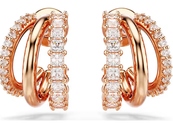 Questi orecchini Hyperbola dalla raffinata fattura sprigionano una bellezza unica. Su ciascun lato, i tre mini cerchi presentano una placcatura color oro rosa, impreziositi da Swarovski Zirconia taglio Round e Square con montatura a griffe. Abbinali ad un bangle o ad una collana coordinati per un look mozzafiato. Articolo nr.: 5698702 Collezione: Hyperbola Dimensione: 1.3 x 0.9 cm Materiale: Placcato color oro rosa, Zirconia Colore: Bianco Peso (singolo oggetto): 1.4 g