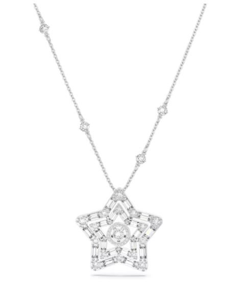 Abbandonati alla magia di una notte stellata con questo pendente Stella. Il motivo a stella luccica di cristalli taglio baguette che circondano una pietra centrale impreziosita dai lampi di luce di cristallo lungo la catena. Questo design placcato rodio è dotato di una chiusura a sfera scorrevole per adattarsi a qualsiasi misura. Colore: Bianco Lunghezza: 75 cm Dimensione pendente: 3.8x3.6 cm Materiale: Cristalli, Placcatura rodio Tipo di fermaglio: Sfera scorrevole