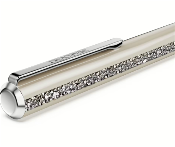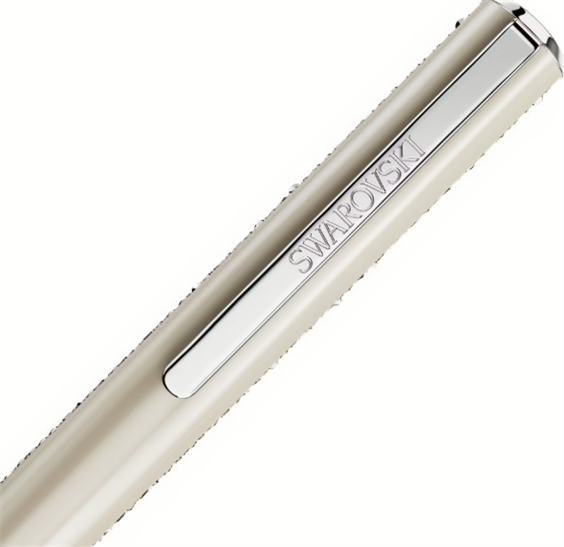 Penna a sfera da donna di Swarovski della collezione shimmer. Penna a sfera cromatura con cristalli Swarovski Beige. Dimensione: 14.3 x 1 cm. Colorazione del cristallo beige. La referenza è 5707705