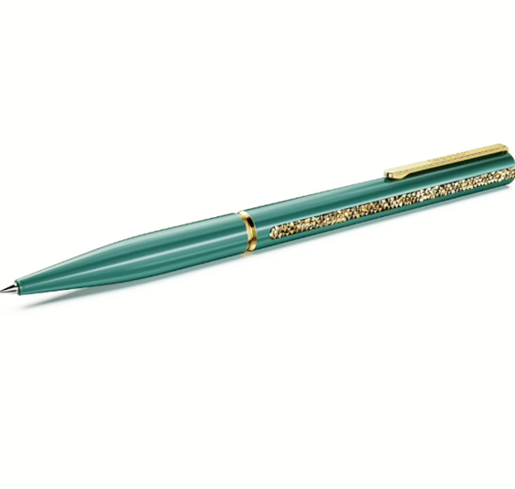 Penna a sfera da donna di Swarovski della collezione shimmer. Penna a sfera placcatura in tonalità oro con cristalli Swarovski Verde. Dimensione: 14.3 x 1 cm. Colorazione del cristallo verde. La referenza è 5707708
