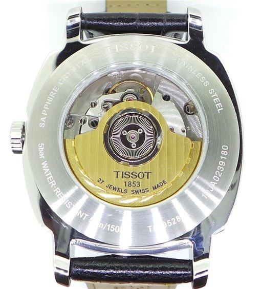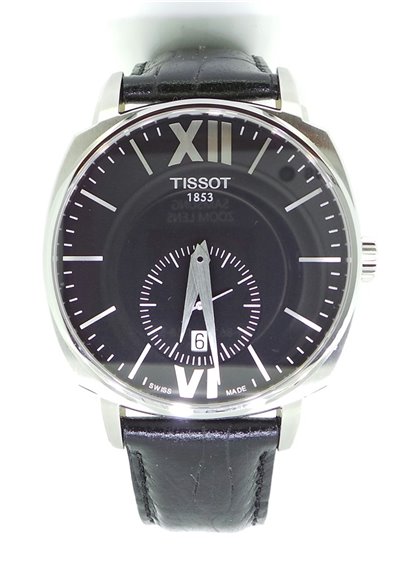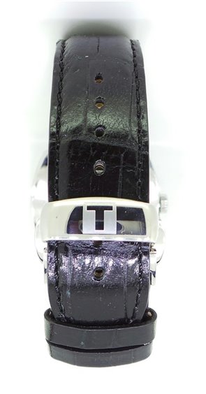 Cassa in acciaio con cinturino in pelle nera . Fissa lunetta in acciaio inox .Quadrante nero con le mani silver-tone e indici bastone. numeri romani segnano le posizioni 6 e 12 in punto . Marcatori minuto intorno al bordo esterno . Quadrante Tipo: Analogico . Visualizzazione della data nella posizione ore 6 . Secondi sub-quadrante sopra la posizione ore 6 . Movimento a carica automatica . Eta 2895-2 motore. cristallo zaffiro resistente agli urti . Diametro cassa : 40 mm . Spessore cassa : 10 mm. Larghezza di banda : 20 mm . chiusura a farfalla con pulsanti di sicurezza . Resistente a 50 metri / 165 piedi . Funzioni: ore, minuti, secondi .