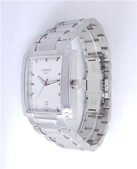 Orologio unisex rettangolare, movimento quarzo swiss-made, cassa in acciaio 316L, vetro zaffiro antigraffio, impermeabile 3bar, quadrante bianco con indici in acciaio, bracciale a maglia in acciaio lucido e spazzolato.