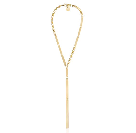 Illumina il tuo décolleté con questa collana ad Y composta da lastrine piatte iper riflettenti con chiusura in catena rolò regolabile. Contemporaneo e sofisticato, il design ad Y si unisce alla classicità del bagno in oro creando un perfetto equilibrio tra stile audace e raffinata eleganza. Un gioiello versatile ed esclusivo per illuminare ogni outfit.