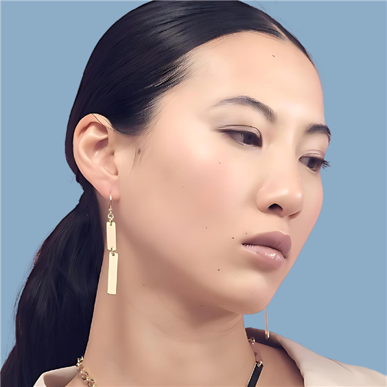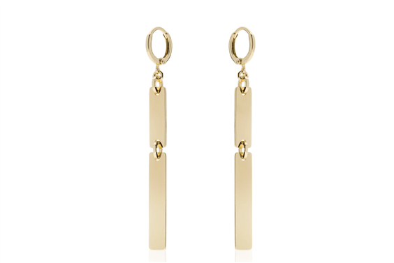 La linea allungata di questi orecchini pendenti composti da piastrine piatte placcate oro cattura e riflette la luce creando un gioco di scintillii irresistibile. Sofisticati e versatili, sono l'accessorio adatto ad ogni occasione. Completa ogni tuo look dal più casual al più elegante indossando questi orecchini per un tocco extra di luce dorata e preziosa