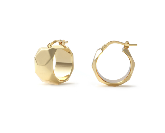 Orecchini a cerchietto con superficie sfaccettata e chiusura a baionetta. Diametro 1,50 cm. Un gioiello che unisce tradizione orafa e design contemporaneo a favore di un'eleganza senza tempo. Non solo un accessorio luminoso e versatile perfetto per impreziosire ogni outfit, ma una vera e propria chiave d'espressione. Scopri i gioielli coordinati per completare il look, rifletti tutte le sfaccettature del tuo stile.
